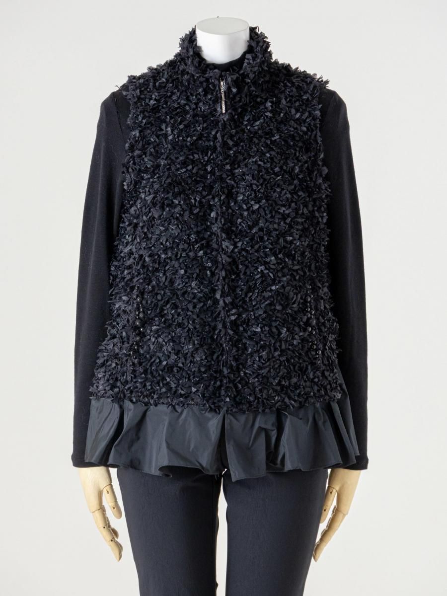ふわふわとした手触り&軽さも魅力な上、裏地にタフタを使ってるので、風の侵入も防げるベスト。