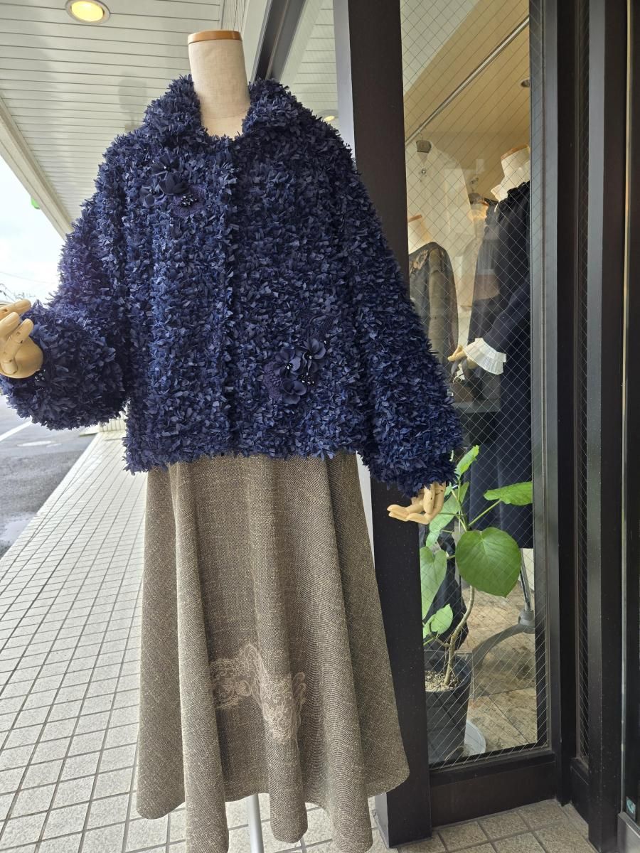 くすみカラーが大人な雰囲気で、ツィード素材・レーヨン混の滑らかに落ち感ある素材を使ったクラシカルな雰囲気も醸し出す一枚です。